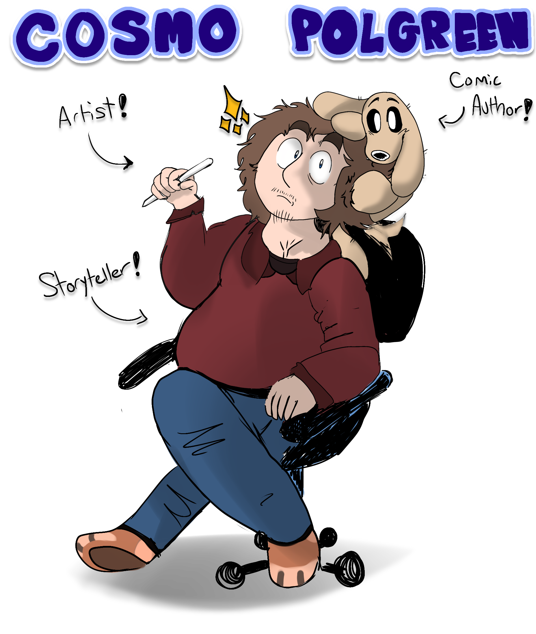 My name is Cosmo Polgreen (he/they), and I'm an LGBTQ+ artist, comic author and storyteller making characters, comics and illustrations in Chicago, Illinois.